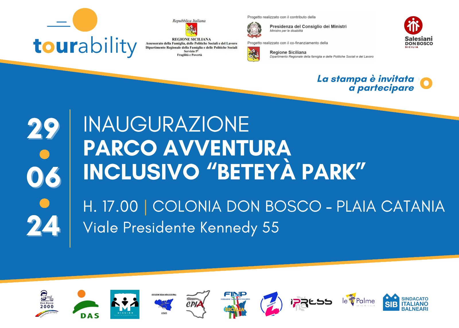 Il Beteyà Park sarà inaugurato alle ore 17 sabato 29 giugno, parteciperanno all’evento l’Arcivescovo di Catania Luigi Renna, l’Imam di Catania Abdelhafid Kheit, Antonio Scavone già assessore regionale della Famiglia, delle Politiche Sociali e del Lavoro, l’assessore ai Servizi Sociali, Inclusione sociale e Famiglia del Comune di Catania Bruno Brucchieri, l’assessore alla Pubblica Istruzione del Comune di Catania Andrea Guzzardi, l’ispettore dei Salesiani di Sicilia Giovanni D'Andrea, il presidente di Don Bosco 2000 (capofila del progetto) Agostino Sella e Francesco Cauchi, advisor del progetto Tourability.